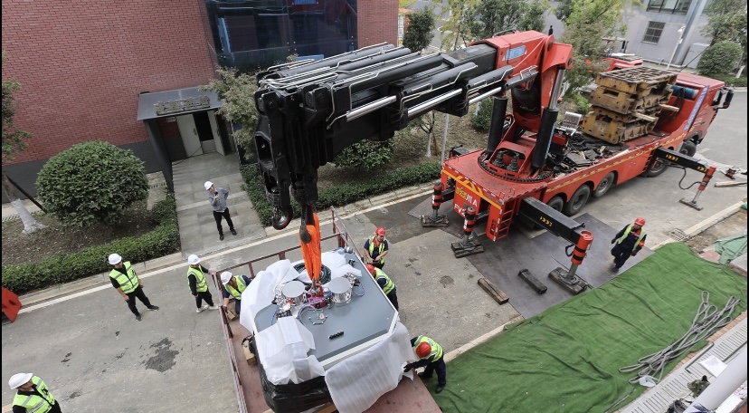 2024年10月30日,全球第二臺由成都紐瑞特醫(yī)療科技股份有限公司采購比利時Ion BEAM Applications S.A(IBA)設(shè)計制造的商用30MeV回旋加速器Cyclone IKON順利完成吊裝。四川省軍民融合辦、雙流區(qū)相關(guān)領(lǐng)導(dǎo)、股東代表、同寫意代表出席儀式,比利時IBA公司代表、紐瑞特員工代表、媒體記者等40余人參加儀式。